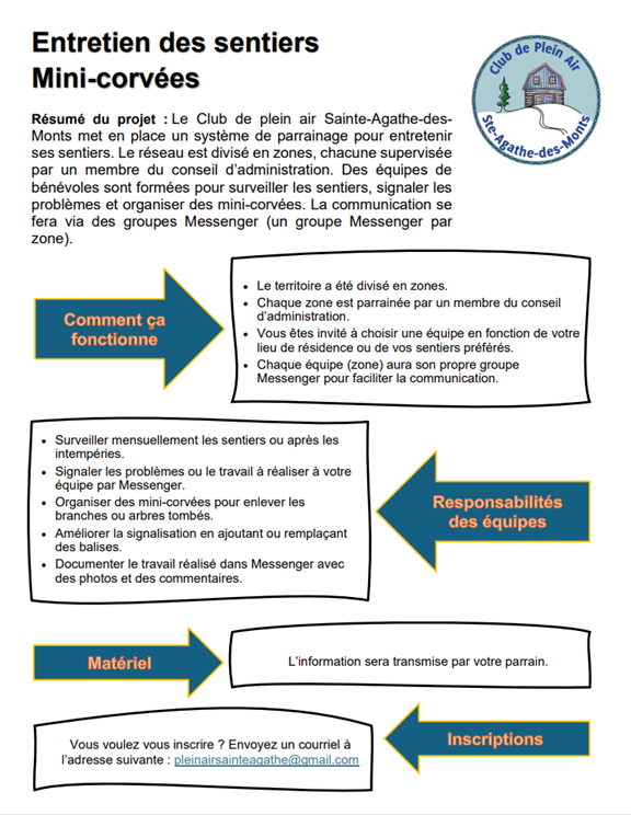 Le Club de plein air Sainte-Agathe-des-Monts met en place un système de parrainage pour entretenir ses sentiers.